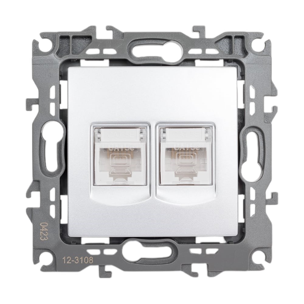 Информационная двойная розетка ЭРА 12-3108-03 2XRJ45, IP20, 12, алюминий Б0014731