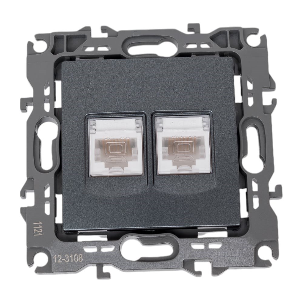 Информационная двойная розетка ЭРА 12-3108-12 2XRJ45, IP20, 12, графит Б0019354