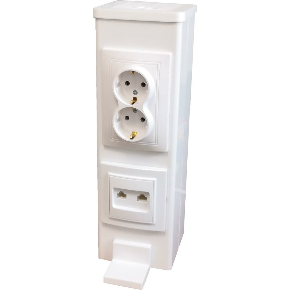 Электромонтажная алюминиевая колонна ООО ФЭА 1шт., двойная розетка, 1 шт. двойная компьютерная ЭК-33-2 предназначена для вертикальной подводки электрических кабелей, оптоволокна, линий интернета и телефонии к рабочим местам. Конструкции используют в офисах, магазинах, выставочных центрах, лабораториях а также в других больших помещениях. Конструкция крепится к полу и обеспечивают аккуратную и эстетичную прокладку проводов.