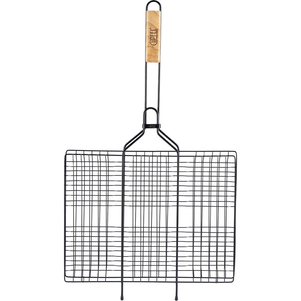 Двойная металлическая решетка-гриль Gipfel 5941 — незаменимый аксессуар для приготовления еды на открытом воздухе. Поможет запечь мясо, рыбу, птицу, овощи. Продуманная конструкция и размеры (40х71 см, длина ручки - 35 см) позволят закрепить изделие на жаровне или мангале. Решетка изготовлена из нержавеющей стали, которая характеризуется устойчивостью к коррозии, повышенной степенью прочности и не деформируется при контакте с температурами. Прутья с антипригарным покрытием Teflon. Конструкция аксессуара предусматривает наличие специального обжимного кольца, которое надежно зафиксирует две части решетки. Для чистки изделия не рекомендуется использовать металлические губки или скребки.