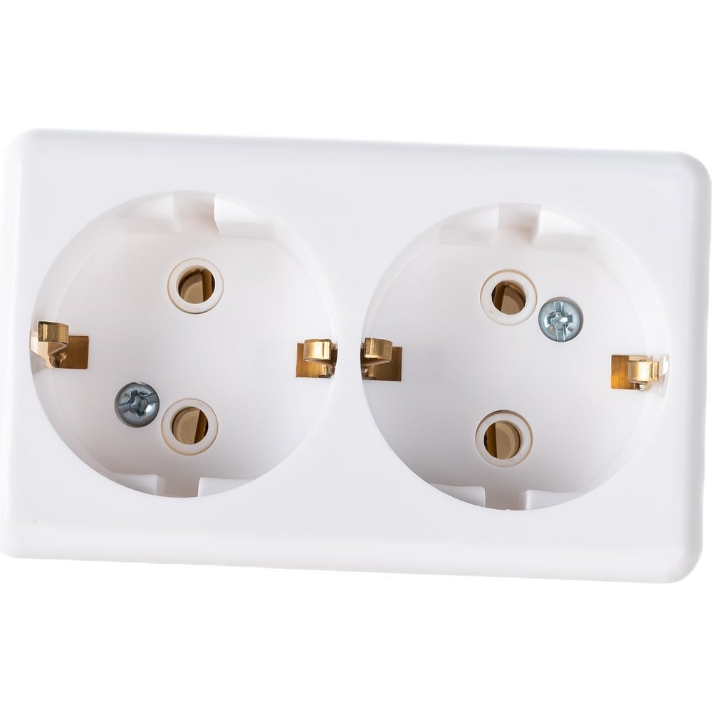 Розетка ЮПИТЕР двойная наружная белая с заземлением Эконом JP7421-04