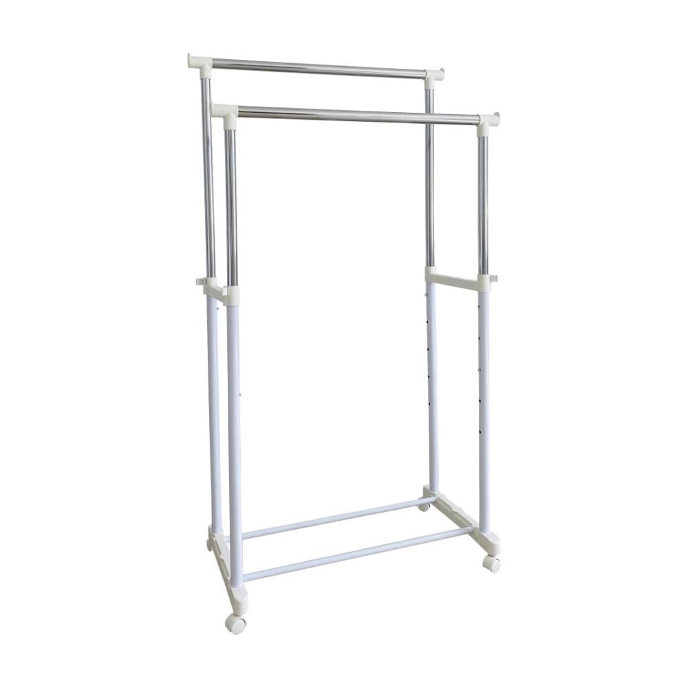 Двойная передвижная стойка для одежды UniStor BELFAST 211171 оснащена колесиками, которые позволяют легко перевозить ее с места на место. Выдерживает нагрузку до 25 кг. Стойка выполнена из долговечной хромированной стали в сочетании с прочным пластиком. Предусмотрена уникальная система регулировки высоты (пин-лок).