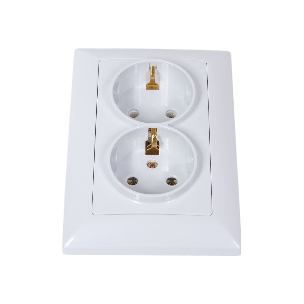 Розетка двойная 2-я серии Intro Solo скрытой установки цвет белый 4-205-01. Номинальные характеристики 16А 250В. Розетка выполнена из негорючего термопласта, укомплектована одноместной рамкой, оснащена винтовыми клеммами. Клеммы с двумя отверстиями позволяют соединять соседние розетки шлейфом. Установка в подрозетник производится как на монтажные лапки, так и на винты.