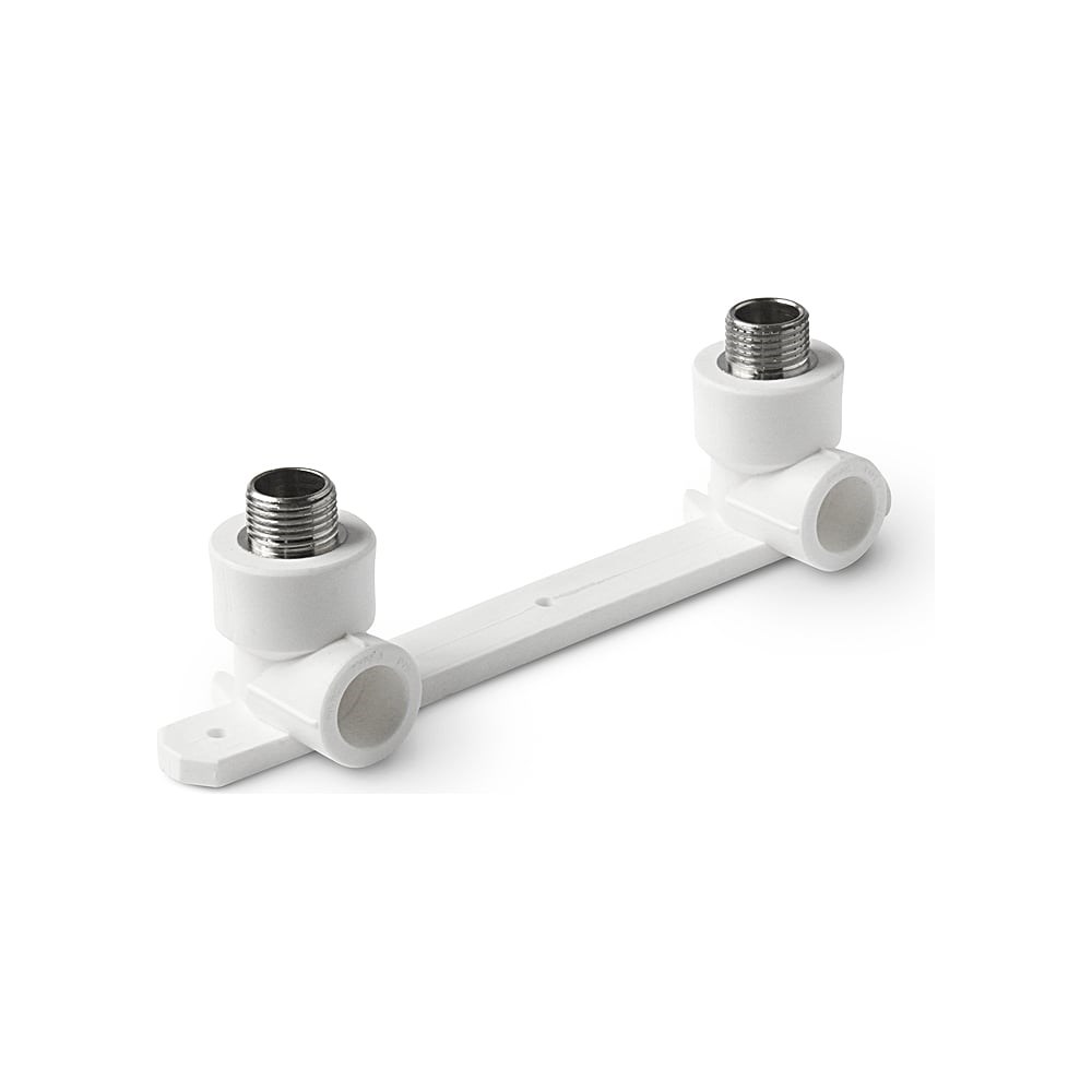 Комбинированный двойной угольник с креплением PRO AQUA PP-R НР белый, 20 мм, 1/2" PA280108Pb благодаря своей способности к долговременной работе при высокой температуре, широкому ассортименту фитингов, химической устойчивости, гигиенической безопасности полипропилен получил повсеместное распространение в качестве материала при строительстве внутридомовых инженерных сетей. Изделия характеризуются высокой коррозионной стойкостью. Закладной элемент производится из стойкой к обесцинкованию латуни CW617N. В процессе изготовления на него гальваническим методом наносится никелевое покрытие, придающее изделию дополнительную коррозионную стойкость.