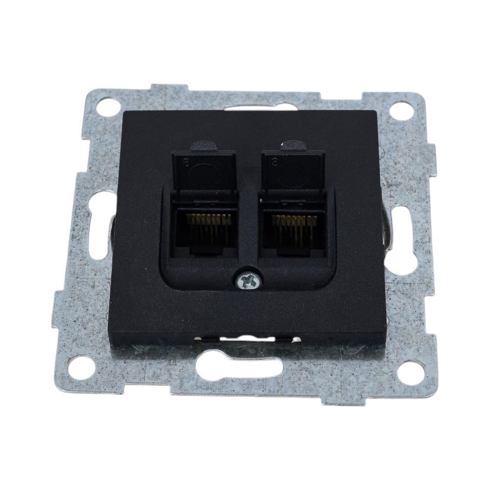Механизм компьютерной розетки GUSI ELECTRIC Bravo RJ45, двойной, СУ, графит С10К2-010