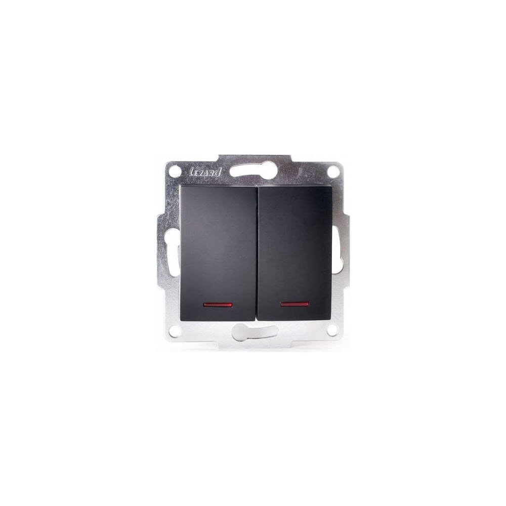 Двойной выключатель Lezard KARINA с подсветкой, чёрный бархат 707-4288-112