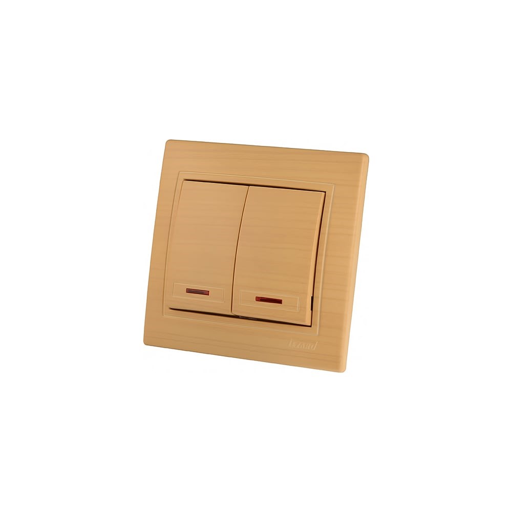 Двойной выключатель с подсветкой LEZARD MIRA ясень 701-4747-112