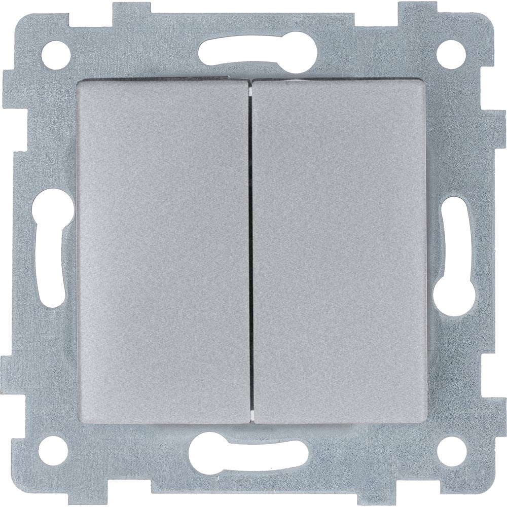 Механизм выключателя двухклавишного скрытой установки, номинальный ток 10А. Видовые детали (корпуса, клавиши) выполнены из ABS пластика, позволяющего получить прочную, износостойкую и глянцевую поверхность. Основание механизмов изготавливаются из армамида – негорючего, термостойкого, стеклонаполненного полиамида с классом негорючести ПВ-0 и стойкостью к воздействию нагретой проволокой 960℃. Механизмы выключателей позволяют выдерживать 40 000 и более циклов включения/выключения. Система менеджмента качества предприятия аттестована в соответствии с международным стандартом ISO 9001.