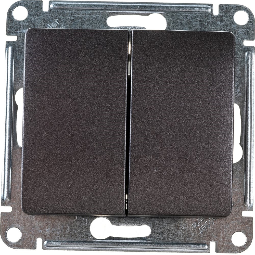 Механизм Systeme Electric (ранее Schneider Electric) серии Glossa (цвет графит) выключателя 2-клавишного.подходит для сетей 250 В, на ток 10 Адвухклавишный выключатель позволяет управлять двумя источниками света с одной точкивыполнен из материала PС+ASA, стойкого к УФ-излучению и появлению царапинэргономичные клеммы расположены в два ряда: сверху и снизу