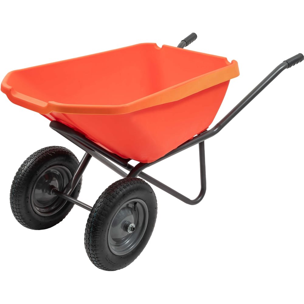 Двухколесная усиленная тачка Gigant с пластиковым кузовом 110л ZAW-06 с двумя литыми полиуретановыми колесами имеет хорошую проходимость, колеса снижают риск опрокидывания. Предусмотрены резиновые накладки на ручки тачки.