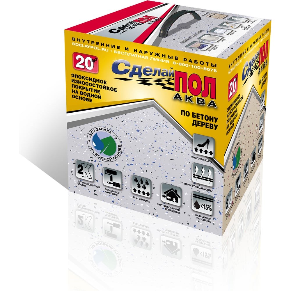 Эпоксидное двухкомпонентное покрытие на водной основе СДЕЛАЙ ПОЛ АКВА (серый; 20 кв.м) 48508 предназначен для защиты и декоративного покрытия бетонных полов, стен и других оснований на цементной основе и прочих минеральных поверхностей. Может быть применён к неглазурованной керамической плитке, кирпичу, цементным штукатуркам, полимер-цементным наливным полам, дереву.