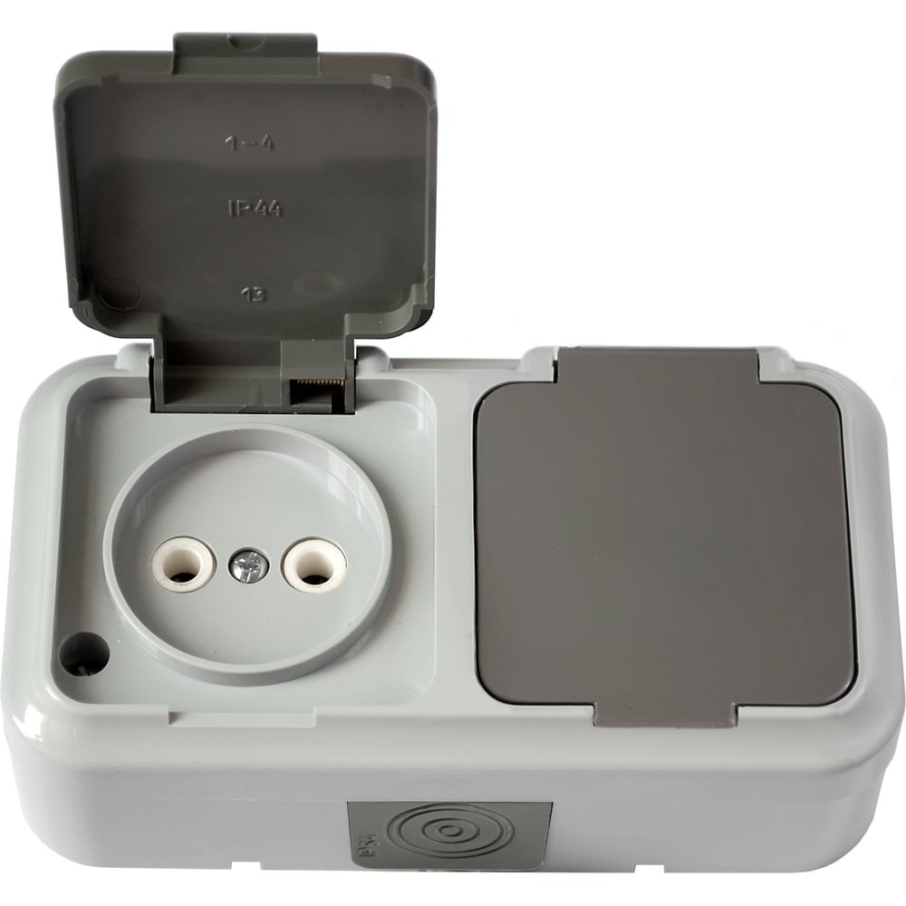 Розетка Bylectrica 2-местная ОУ IP54, серия ПРАЛЕСКА АКВА, серый, РА16-302 03