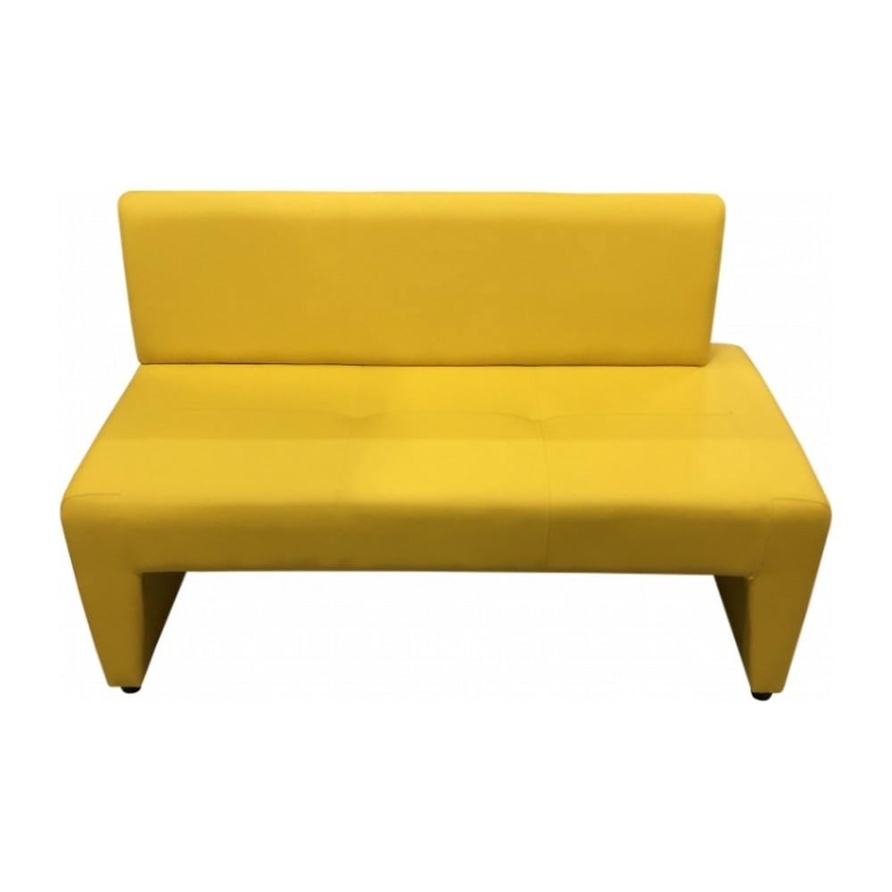 Диван Мягкий офис Ритм двухместный левый желтый РТLT201ЖЛТ предназначен для офиса или дома. За счет эргономичной формы удобен даже при длительном сидении. Является двухместным, поэтому имеет компактные размеры и подходит для небольшой комнаты. Благодаря современному дизайну диван впишется в любой интерьер. Дополнительные технические характеристики: Тип: прямой, нераскладной. Механизм: нет. Ящик для белья: нет. Габариты (в/ш/г): 79x122x56 см. Размер посадочного места (г/в): 45x43 см. Наполнитель: высокой плотности ППУ. Ножки: пластик, 5 см.