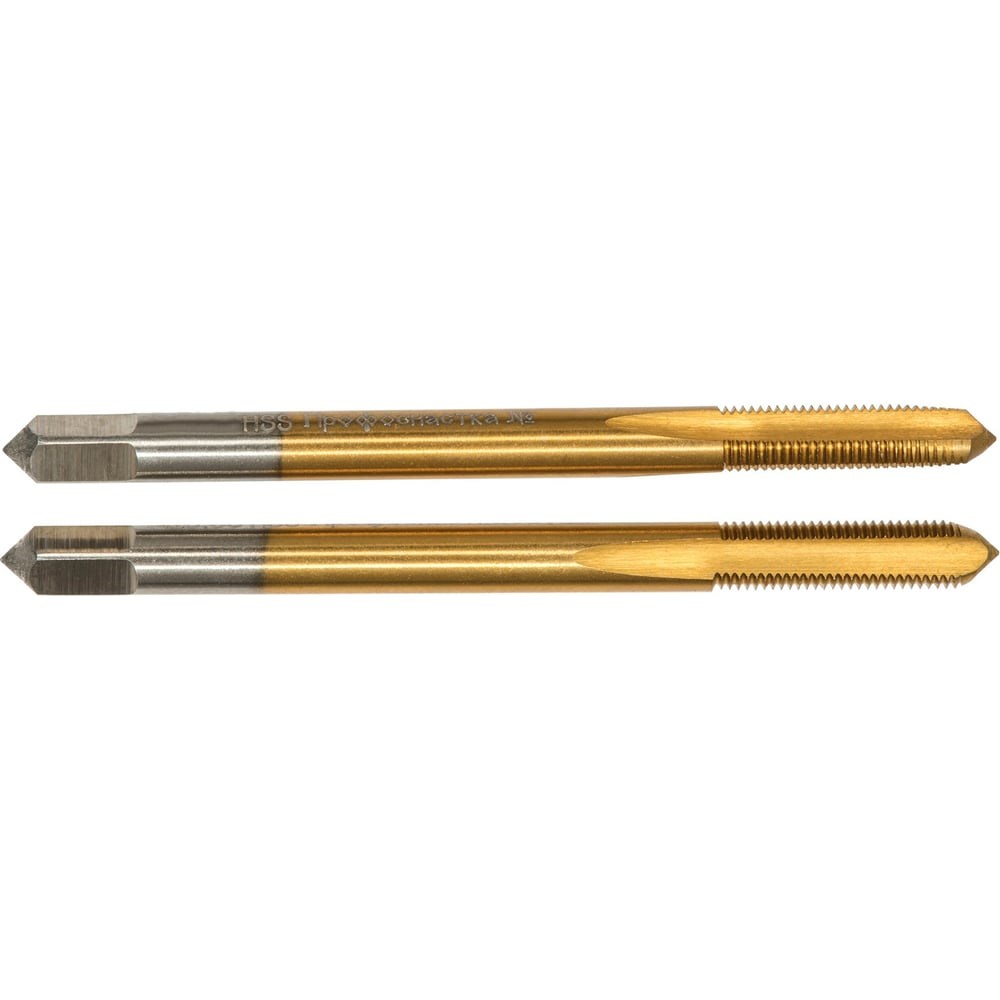 Метчик Эксперт двухпроходный машинно-ручной прямая канавка №139 М4*0,35, HSS M2 TIN, ТМ ПрофОснастка. Метчик выполнен по ISO 529, правый, точность 6H, предназначен для сквозных и глухих отверстий. Прямая канавка обеспечивает легкий отвод стружки при обязательном использовании СОЖ. Ресурс использования на любых металлах многократно увеличивается при использовании СОЖ. Покрытие нитрида титана увеличивает поверхностную твердость и износостойкость, а также обеспечивает повышенный ресурс. Также благодаря покрытию метчик может ограниченно использоваться на нержавеющих сталях. Общая длина метчика 53 мм, длина режущей части 13 мм, диаметр хвостовика 4 мм, посадочный квадрат 3,15 мм.