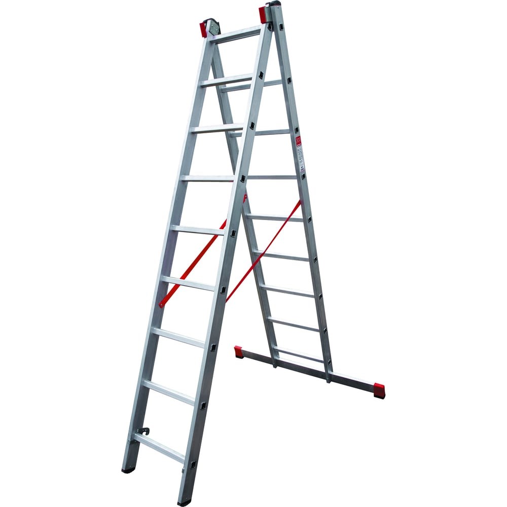 Двухсекционная лестница Новая Высота 2х9 604209 пригодится на строительной площадке, при ремонте, на садовом участке. Рабочая высота раздвижной модели - 4.8 м. В случае же использования лестницы в приставной односекционной форме или в виде стремянки рабочая высота составляет 3.55 м. Траверса присоединена стальными болтами, что позволяет быстро снимать ее при необходимости, например, для более удобной транспортировки или хранения. Пластиковые наконечники защищают приспособление от скольжения по рабочей площадке. Модель устойчива к коррозии, что позволяет применять ее на открытом воздухе. Рельефные ступени не дают пользователю поскользнуться. Конструкция предусматривает наличие дополнительных ребер жесткости несущих элементов, что гарантирует высокую устойчивость к нагрузкам - до 150 кг.