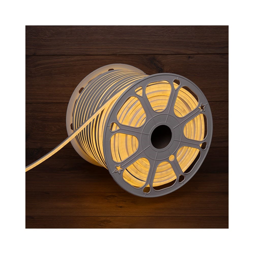 Гибкий неон — это эластичный световой шнур, изготовленный из матовой ПВХ-трубки, внутри которой расположены токопроводящие жилы и светодиодная лента. Используется для рекламной, декоративной и архитектурной подсветки различных объектов, зданий, сооружений и каркасных фигур. Двухсторонний гибкий неон особенно подходит для создания вывесок, а также подсветки витрин и открытых пространств, яркое и равномерное свечение без темных зон.Поставляется в бухтах длиной 100 м. В комплект входит установочный набор (шнур) для простого и надежного подключения к сети. Максимальная подключаемая длина на 1 шнур — 100 м. Следуя несложной инструкции, можно отрезать неон нужной длины: модуль резки составляет 1 м.При подключении гибкого неона к соединительному разъему (муфте) необходимо заизолировать свободное воздушное пространство морозостойким силиконовым герметиком, предотвращающим попадание влаги. Сверху данного соединения необходимо установить термоусаживаемую трубку. Для монтажа двухстороннего неона используются клипсы (приобретаются отдельно). Для крепления неона к металлическому каркасу можно воспользоваться стяжками.