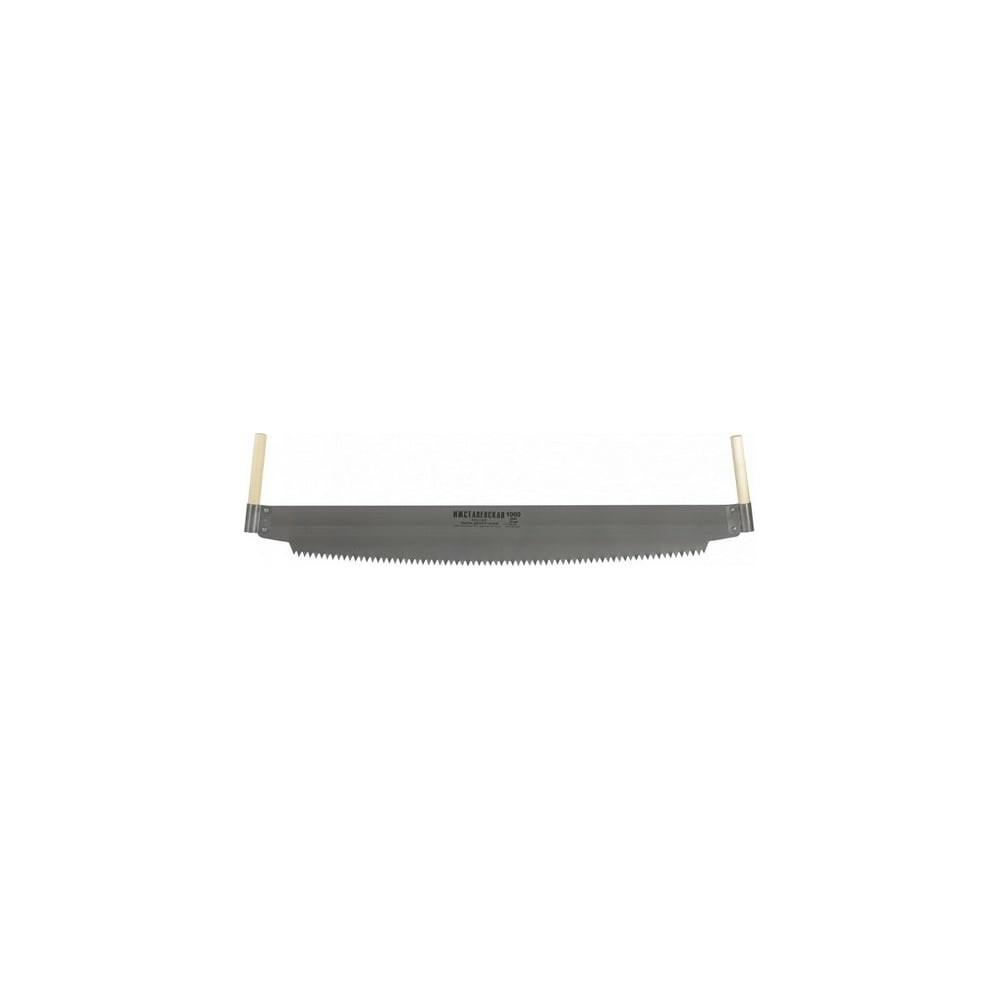 Двуручная пила используется для распиловки древесины. С ее помощью можно спиливать деревья и заготавливать дрова. Крупные зубья с двухгранной заточкой и шагом 12 мм обеспечивают быстрый рез. Зубья разведены, поэтому полотно не застревает в древесине, а стружка своевременно удаляется. Пила пригодится для работы на дачном участке.