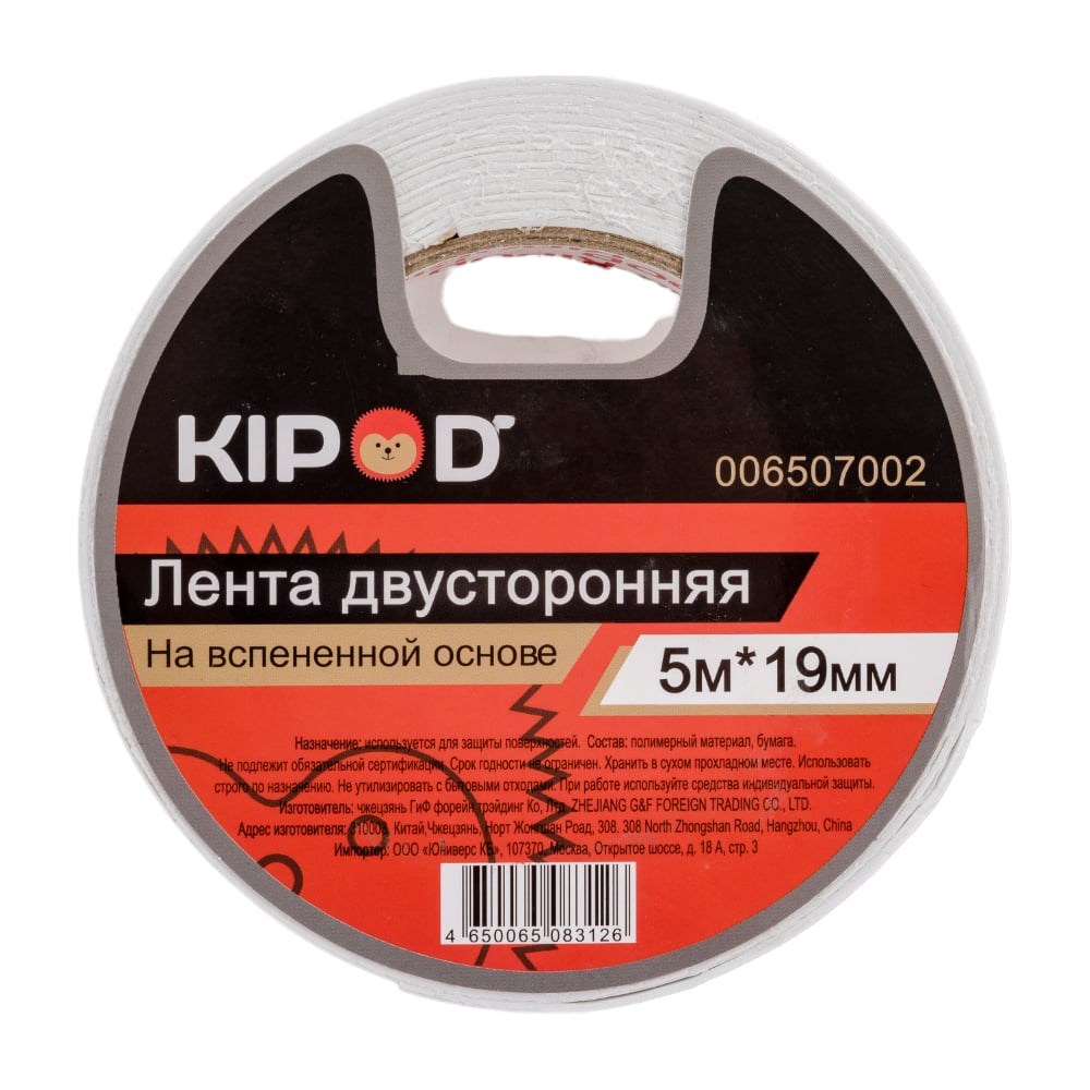 Двусторонняя лента KIPOD на вспененной основе 19мм х 5м 006507002