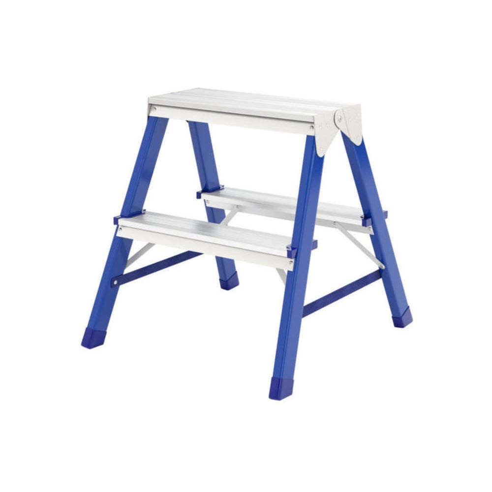 Стремянка пригодится при ремонтных и отделочных работах. Имеет двусторонний подъем. Лестница снабжена двумя поперечными ремнями, что препятствует нежелательному раскладыванию. Изделие не занимает много места в сложенном виде. Внимание! Количество ступеней может отличаться от представленного на фото.