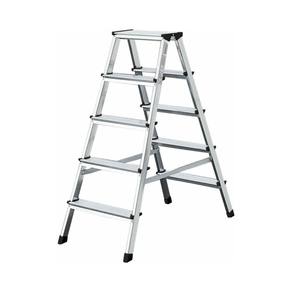 Двусторонняя стремянка Krause MONTO DOPPLO 120342 применяется для проведения различных бытовых работ. Ступени стремянки надежно прикреплены к боковинам, из алюминиевой прямоугольной трубы, прочным заклепочным соединением. Эта стремянка снабжена пятью ступенями с каждой из сторон. Прочное противоударное стальное шарнирное соединение. 6-ти кратное клепочное соединение ступени с боковинами. Большие наконечники на боковины не скользят и не повреждают пол. Прочные ремни.