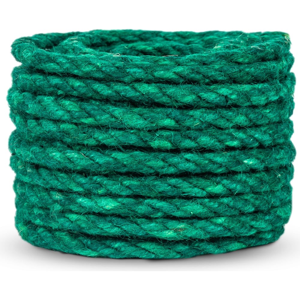 Джутовый канат ЩИТ ДТ тросовой свивки, диаметр 8 мм, зеленый, в отрезках по 15 м ЦН 13748-1 предназначен для хозяйственных нужд, для обвязывания, подъема и транспортировки грузов. Отличается износостойкостью и высокой прочностью волокна.