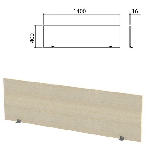 Экран-перегородка "Канц" 1400х16х400 мм, цвет дуб молочный (КОМПЛЕКТ С ФУРНИТУРОЙ)