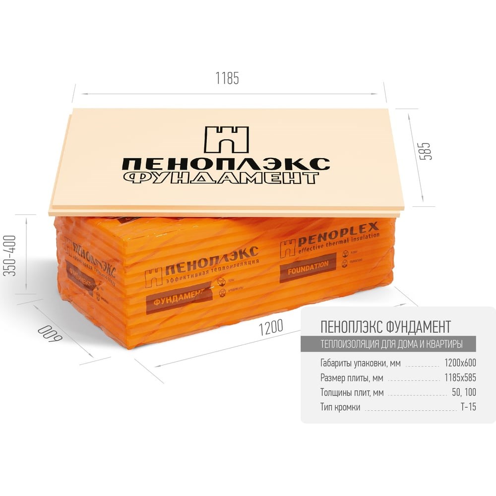 Экструдированный пенополистирол PENOPLEX Фундамент 100x585x1185 мм, упаковка 4 шт. TU0-0002287 - тип плит повышенной прочности, предназначенный для частного домостроения. Рекомендуется для применения в конструкциях под нагрузкой: фундаментов, полов, цоколей, садовых дорожек, эксплуатируемых кровель.