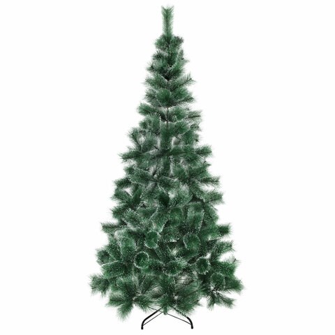 Ель искусственная напольная представляет собой конструкцию из металлического каркаса и закрепляемых на нем ветвей. Материал хвои - полиэтилентерефталат. Цвет хвои - зеленый. Кончики иголок декорированы "искусственным инеем". Высота ели - 210 см. Диаметр нижнего яруса - 105 см. Количество веток - 244.