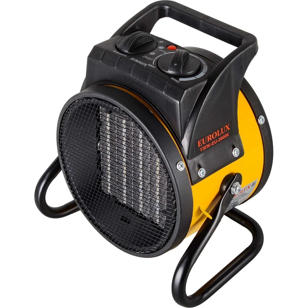 Теплопушка Eurolux ТЭПК-EU-2000K используется для отопления складов, торговых, общественных и других помещений, в т.ч. жилых. Электрическая тепловая пушка мощностью 2 кВт быстро нагревает воздух, поскольку комплектуется керамическим нагревательным элементом. Дуть теплым воздухом прибор начинает практически мгновенно после включения. Прибор работает в двух режимах нагрева (1 и 2 кВт), а также в режиме вентиляции.Электрическая теплопушка отличается простотой управления и безопасностью эксплуатации. Заданный температурный режим поддерживается автоматически за счет работы термостата. Прибор соответствует нормам пожарной безопасности, так как имеет защиту от перегрева, что исключает возникновение опасной ситуации.Тепловая пушка имеет круглый корпус, но при этом ее можно легко установить на полу в любом месте. Так как вес прибора составляет всего 1,63 кг, его можно без проблем переносить. Также Eurolux ТЭПК-EU-2000K отличается компактными размерами, что очень удобно при транспортировке.Важно: не накрывать и не ставить тепловую пушку на ковровые покрытия. Помещения должны быть сухими, с температурой от -10 до +40°С.