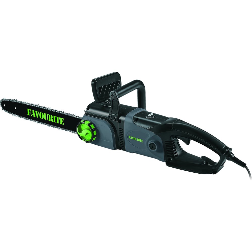 Пила цепная электрическая FAVOURITE GC 2416 PROF — отличный помощник на даче и дома. Поможет приготовить дрова, спилить ненужные ветки, подрезать материалы для строительства. Оснащена мощным надежным двигателем. При этом не требует особой подготовки к работе: не нужно постоянно заливать топливо, нет проблем с запуском при любой температуре. Обладает уменьшенной вибрацией, нет запаха топлива при работе.Безопасность использования. Передний щиток служит одновременно защитой руки и инерционным тормозом цепи.