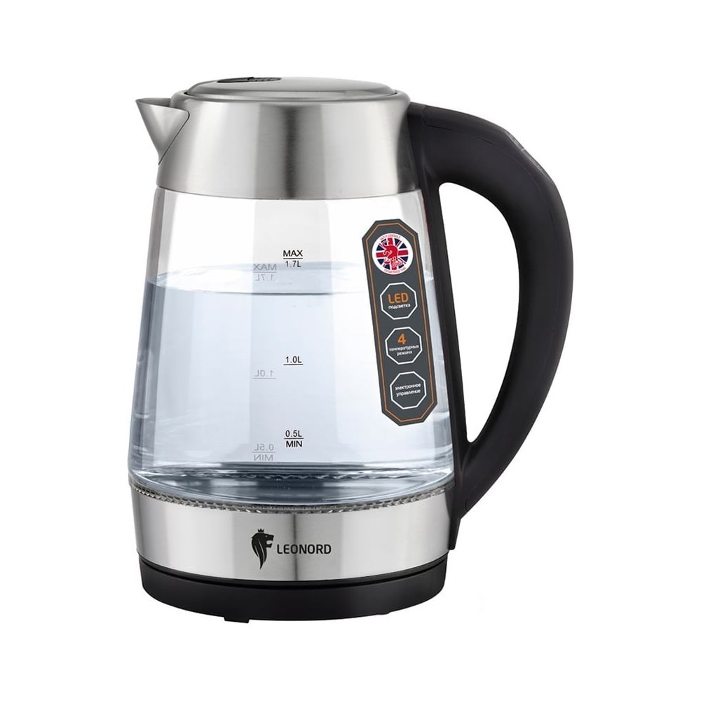 Электрический чайник с функцией термопота Leonord LE- 1507 1.7 л стекло, пластик 104865 предназначен для использования в офисе или дома.Хорошо держит температуру, благодаря чему вода дольше остается горячей.Современный дизайн впишется в любой интерьер.Чайник не ржавеет, за счет чего прослужит долго.Мощность: 1850-2200 Вт Корпус из термостойкого стекла Автоотключение при закипании Защита от работы без воды Возможность поворота на подставке на 360º Закрытый нагревательный элемент из нержавеющей стали Шкала уровня воды Фильтр Электронное управление Функция кипячения Установка t подогрева воды 60/70/80/90℃ Сохранение установленной t 60/70/80/90℃ Подсветка: разный цвет для каждой температуры Контроллер: OTTER Гарантия 2 года