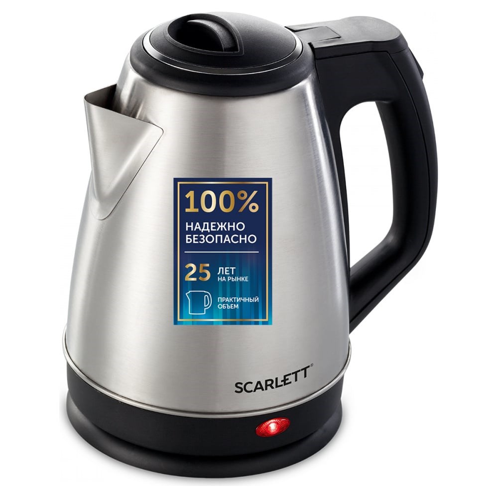 Электрический чайник Scarlett SC-EK21S25 представляет собой качественный бытовой прибор для кипячения воды. Объем чайника в 1.5 литра позволяет приготовить напитки для большой компании. Корпус чайника выполнен из качественной нержавеющей стали. Материал не впитывает посторонних запахов, не меняет вкус воды и обладает стойкостью к износу. Закрытый нагревательный элемент гарантирует долгий срок службы прибора. Система многоуровневой безопасности «Safe Work» обеспечивает автоотключение при закипании, и защиту от включения без воды. Это делает процесс эксплуатации прибора простым и безопасным.