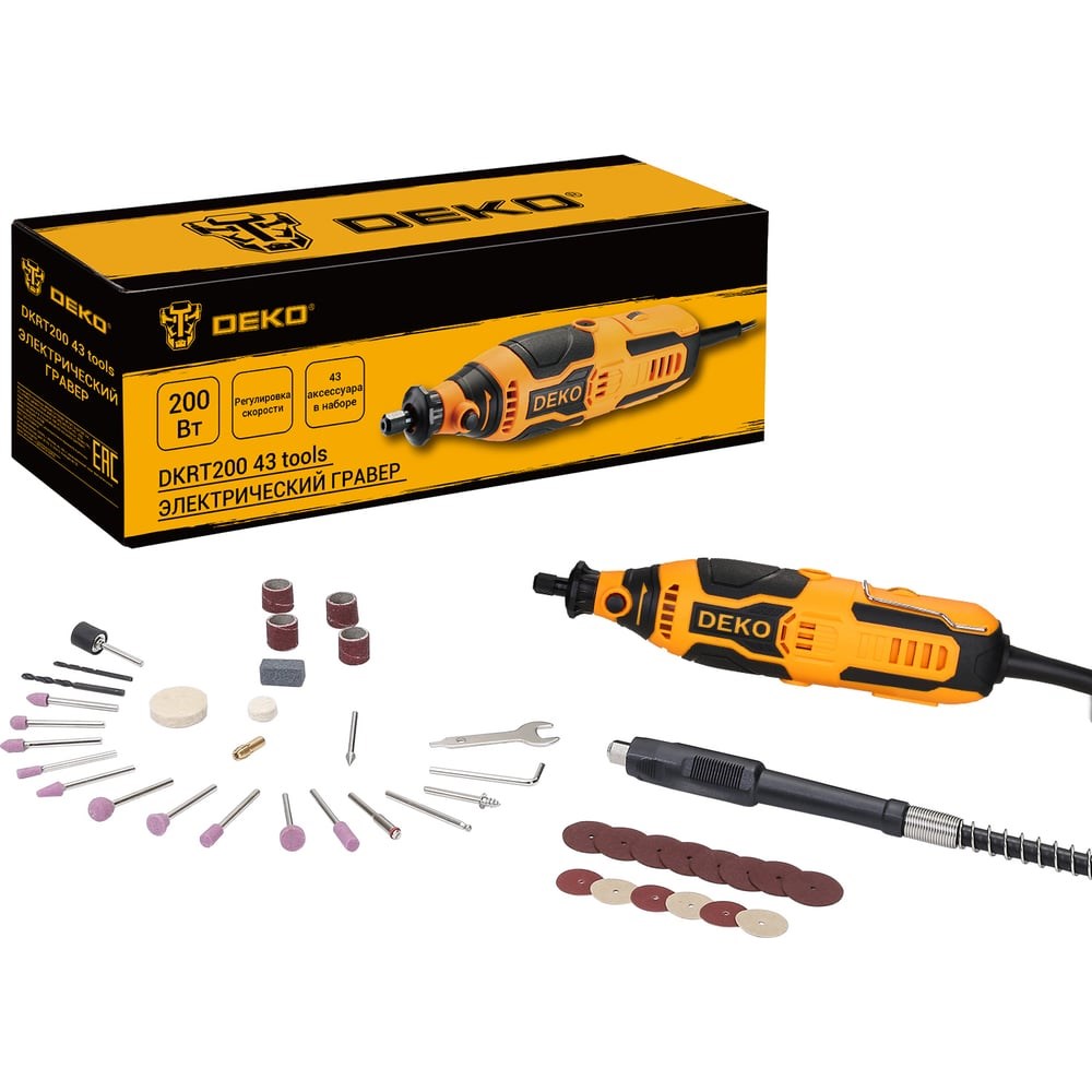 Гравер электрический DEKO DKRT200 с регулировкой скорости идеально подходит для шлифования и полировки небольших поверхностей благодаря регулировке скорости и различным аксессуарам. Дизайн значительно улучшает видимость при работе. Управляется одной рукой. Регулируемая скорость способствует удалению материала при давлении на прибор. Надежный металлический зажимной патрон. Поставляется в комплекте с набором из 43 инструментов. Напряжение: 220 В Мощность: 200 Вт Число оборотов: 10000-36000 об/мин Размер зажимаемой оснастки: 3,2 мм