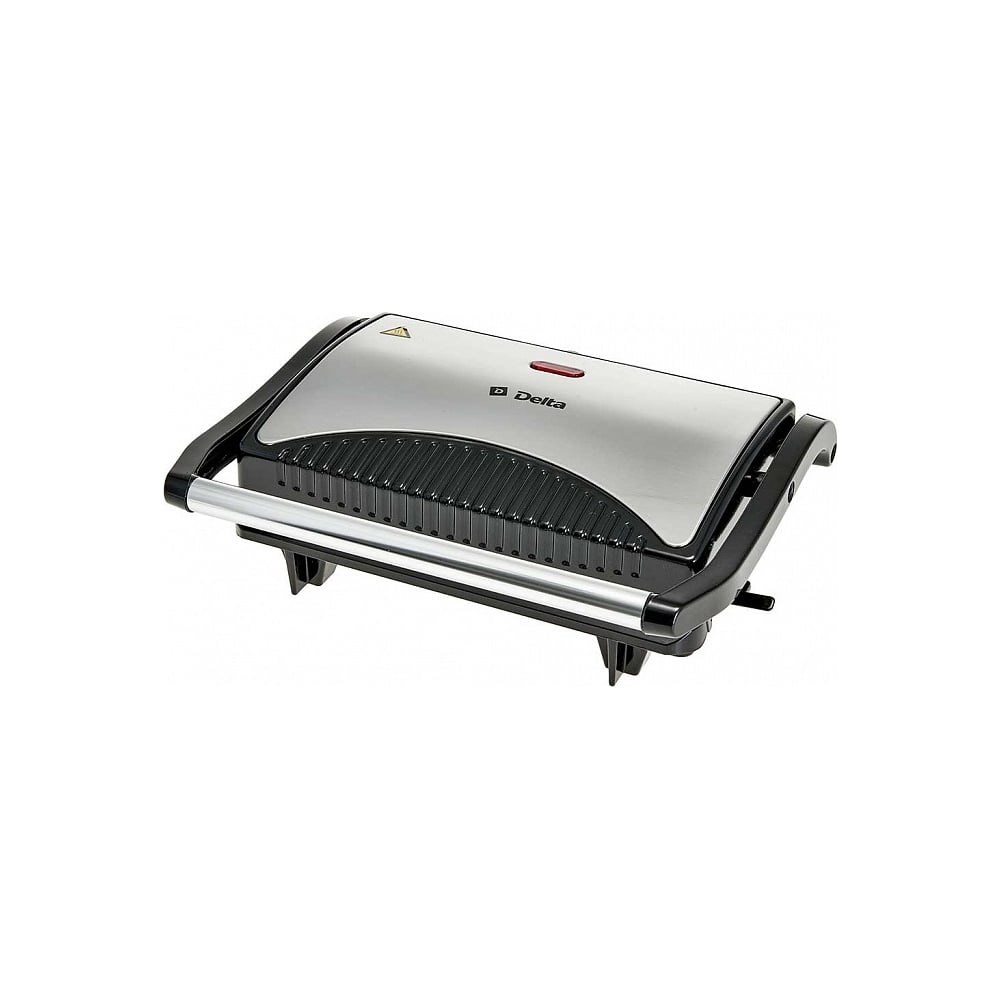 Электрический сэндвич-гриль Delta DL-6400 700 Вт Р1-00008111 - это современный бытовой прибор для приготовления различных блюд методом бесконтактной жарки на решетке над нагревательным элементом. За счет использования двух нагревательных пластин гриль-пресс равномерно пропекает блюда сразу с двух сторон. Плавающая (подвижная) верхняя жарочная поверхность оказывает равномерное давление на продукты. Дополнительные характеристики: Номинальная потребляемая мощность: 700 Вт; Максимальная температура нагрева рабочих (жарочных) поверхностей: 210±20°С.