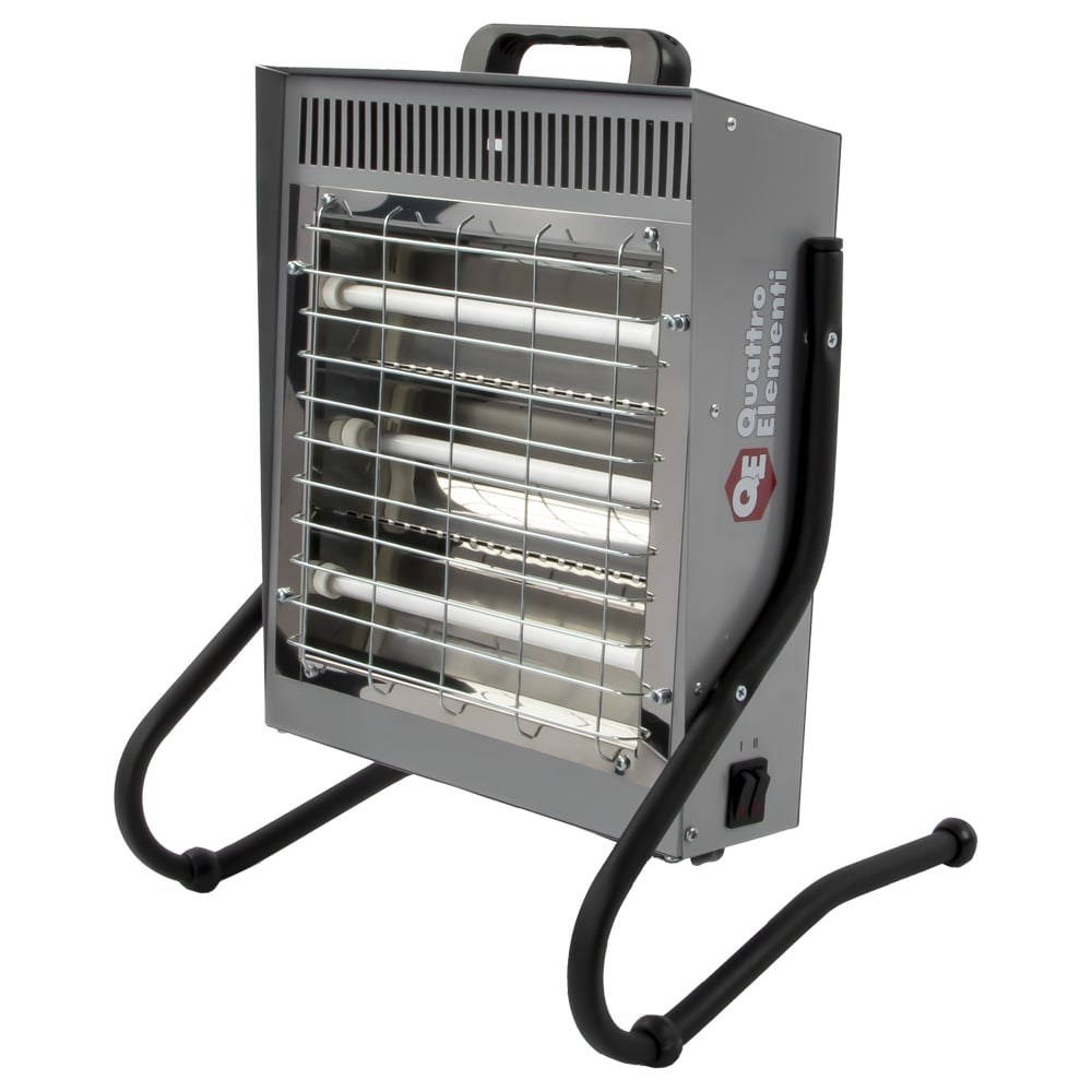 Электрический нагреватель воздуха QUATTRO ELEMENTI QE-1500i инфракрасный 1,5 кВт 790-557 - оборудование, предназначенное для использования в гаражах, складах, мастерских. Принцип действия основан на инфракрасном излучении. Предусмотрено три уровня мощности - 0.5 кВт, 1 кВт, 1.5 кВт - что позволяет подобрать наиболее оптимальную интенсивность нагрева при выполнении различных операций.