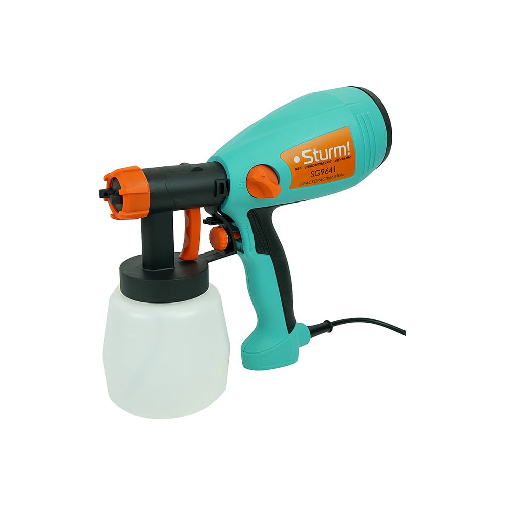 Sturm SG9641 – универсальный компактный краскораспылитель – предназначен для распыления лакокрасочных материалов, как водорастворимых, так и на основе растворителей, вязкостью до 35 DIN. Имеет систему распыленияHVLP (HighVolume /LowPressure), характеризующуюся большим объемом воздуха и низким давлением – это гарантирует равномерное нанесение лакокрасочного материала на поверхность заготовки, при минимальных потерях на разбрызгивание. Благодаря небольшим габаритам и массе, краскораспылитель Sturm SG9641 максимально комфортен в эксплуатации и позволяет эффективное использование даже в условиях с трудным доступом. Прорезиненная накладка на рукояти способствует лучшей фиксации устройства, а оптимальная балансировка обеспечивает лучший контроль и минимальную нагрузку на руку даже при полностью заполненном лакокрасочным материалом контейнере. Особенности: Технология HVLP (HighVolume-LowPressure) – увеличивает производительность благодаря более высокому проценту переноса ЛКМ на окрашиваемую поверхность. Регулировка подачи ЛКМ – позволяет оптимально настроить подачу ЛКМ исходя из размера объекта, необходимой скорости проведения работы или требуемого качества лакокрасочного покрытия. Встроенный регулятор факела (горизонталь, вертикаль, круг) –позволяет работать краскораспылителем в любой плоскости. Быстросъемный пульверизатор – обеспечивает удобство очистки и перезарядки лакокрасочным материалом.