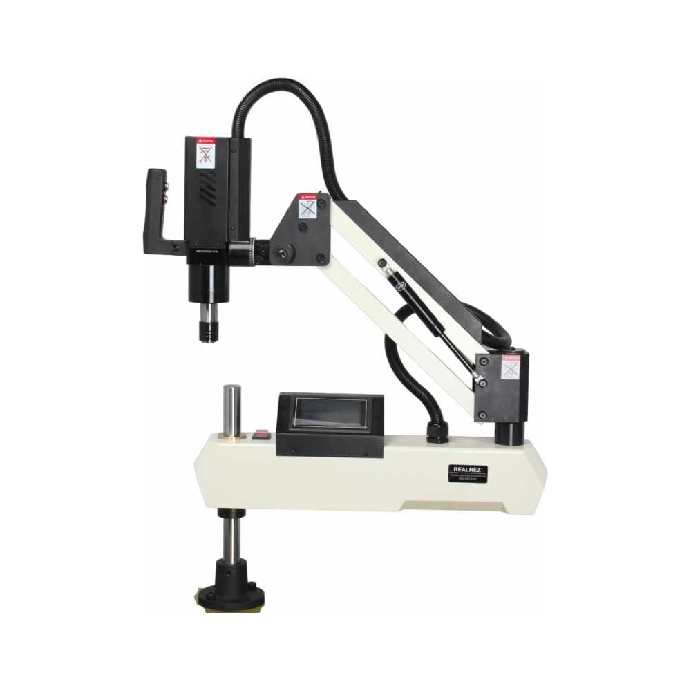 Резьбонарезной манипулятор M12S предназначен для автоматического нарезания резьбы. Обладает высокой точностью обработки и отличным темпом работы. Способен нарезать резьбу в сквозных и глухих отверстиях заготовок из стали, чугуна, цветных сплавов и пластиков. Резьбонарезной манипулятор обеспечивает гибкость в решении производственных задач, позволяя мобильно и быстро нарезать резьбу в заготовках любого размера, благодаря малому весу и манипулятору. Манипулятор с магнитным основанием может быть размещён на любой металлической поверхности, легко выполняя нужные задачи в труднодоступных и неудобных для традиционных инструментов местах. Станок может быть дополнительно оборудован специальным столом (приобретается отдельно), таким образом получится полноценное выделенное рабочее место. Подойдёт как частным мастерам, так и под производственные необходимости. Оснащен поворотным модулем для нарезки резьбы в пространстве: вертикальное, горизонтальное и на 360 градусов в каждом положении. Realrez М12S обладает рядом различных дополнительных функций, таких как режим сохранения энергии, высокоскоростной, низкоскоростной режимы (для нарезки резьбы в нержавеющей стали и др.), режим повышенной подачи и другие. Редуктор и сервомотор работаю плавно и не склонны к поломкам.