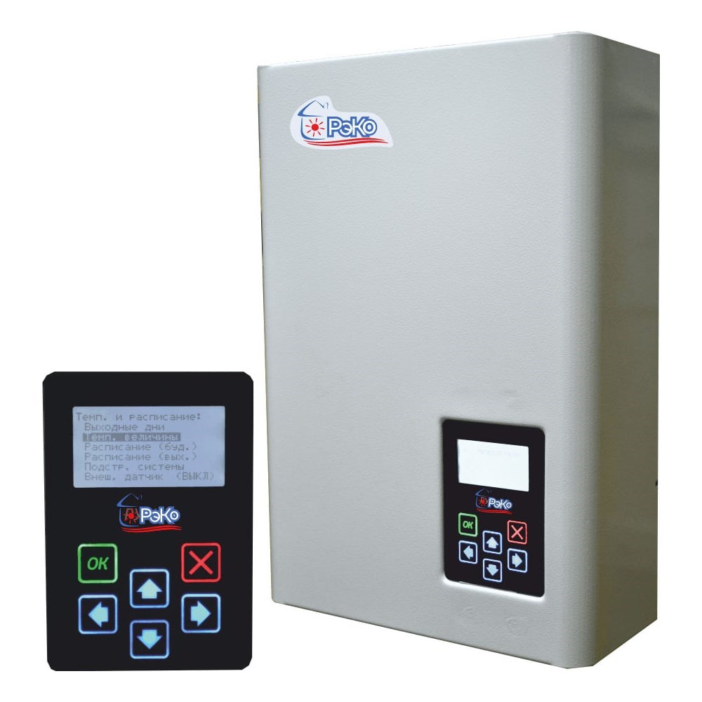 Электрокотел РУСНИТ РЭКО-12П, 12 кВт 380В 46012120005 работает от сети напряжением 380В. Данный одноконтурный агрегат обеспечивает создание комфортных условий пребывания в жилых и производственных помещениях. Управление котлом осуществляется благодаря функциональной панели с ЖК-дисплеем, имеющей все необходимые индикации (информация о текущих температурах, режимах работы и неисправностях).