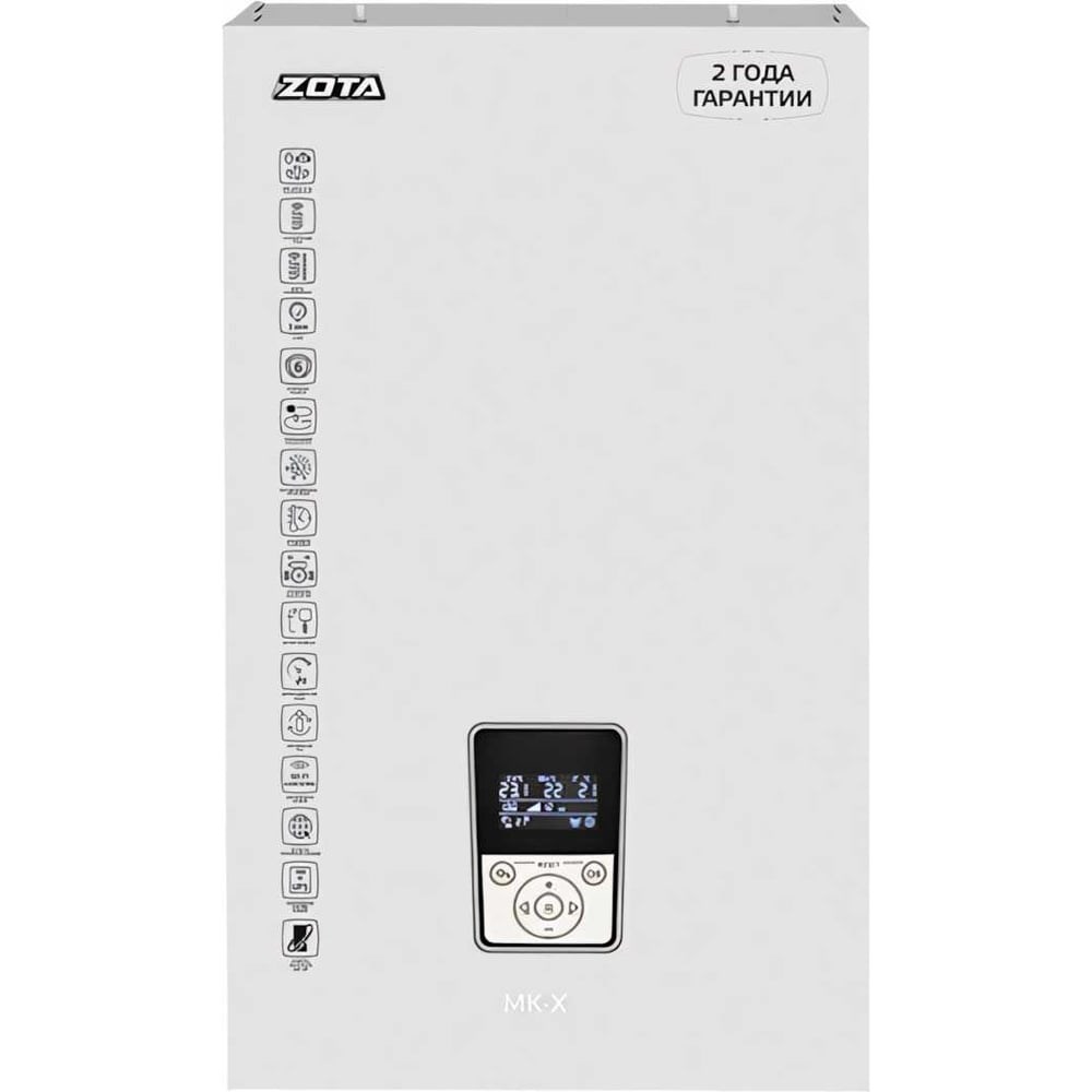 Мини-котельная - это комплекс оборудования, собранный в одном корпусе: тэновый электрокотел с силовым блоком, контроллером, расширительным баком , циркуляционным насосом и группой безопасности. Информативный графический дисплей; Система самодиагностики; Управление по температуре теплоносителя и воздуха; Погодозависимое регулирование; Управление циркуляционным насосам; Возможность самостоятельного обновления программного обеспечения; Возможность подключения внешнего комнатного термостата (по “сухому контакту”); Дистанционное управление котлом с мобильного телефона; Дистанционное управление котлом по цифровой шине с использованием протокола OpenTherm; Возможность подключения внешнего ИБП для питания цепей контроллера, насоса и клапана ZOTA BPV, Fugas. Безопасность Плавная регулировка температуры теплоносителя от +20 до +90°С с возможностью использовать котлы в системе «теплый пол» без дополнительной регулирующей арматуры; 6 уровней защиты: независимый автоматический расцепитель, датчик уровня теплоносителя, датчик температуры теплоносителя, датчик перегрева теплоносителя, термопредохранители (на силовых реле), автомат защиты сети. Надежность Блоки ТЭН из нержавеющей трубки; Ротация ступеней мощности - выравнивание ресурса ТЭНов; Расширенный диапазон питающего напряжения; Защита блока управления от повышенного напряжения; Возможно использование незамерзающих теплоносителей; Рабочее давление - до 5 атм.; Расширенная двухлетняя гарантия.