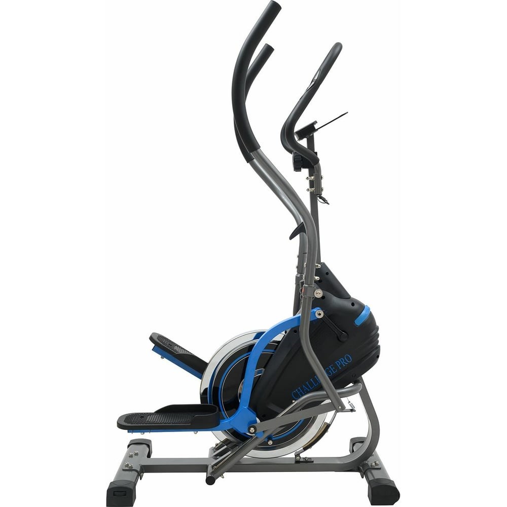 Эллиптический тренажер с элементом степпера DFC CHALLENGE PRO E8019B имитирует восхождение в гору и нагружает различные группы мышц. Длина шага укороченная под степпер (по горизонтали 18 см, по вертикали 23 см). Изменение нагрузки происходит с помощью механического регулятора на стойке, 8 положений регулировки. Большие педали с бортиком и нескользящей поверхностью для комфортного использования. Консоль выполнена в форме держателя под планшет или смартфон. Удобно прослушать трек или посмотреть любимое видео во время тренировки. На дополнительном поручне установлены датчики пульса с отображением на дисплее. Держатель для бутылки расположен на стойке тренажера.