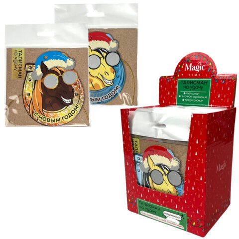 Такая лошадка станет удачным дополнением основного подарка и красивым елочным украшением (игрушка имеет петельку для подвешивания). На лицевой стороне каждой лошадки в очках спрятаны таинственные предсказания, которые помогут вам заглянуть в будущее. Просто сотрите защитный слой, и вы узнаете, что готовит вам грядущий год! Будет ли он успешным и полным новых возможностей? Все станет ясно, стоит только открыть предсказание.