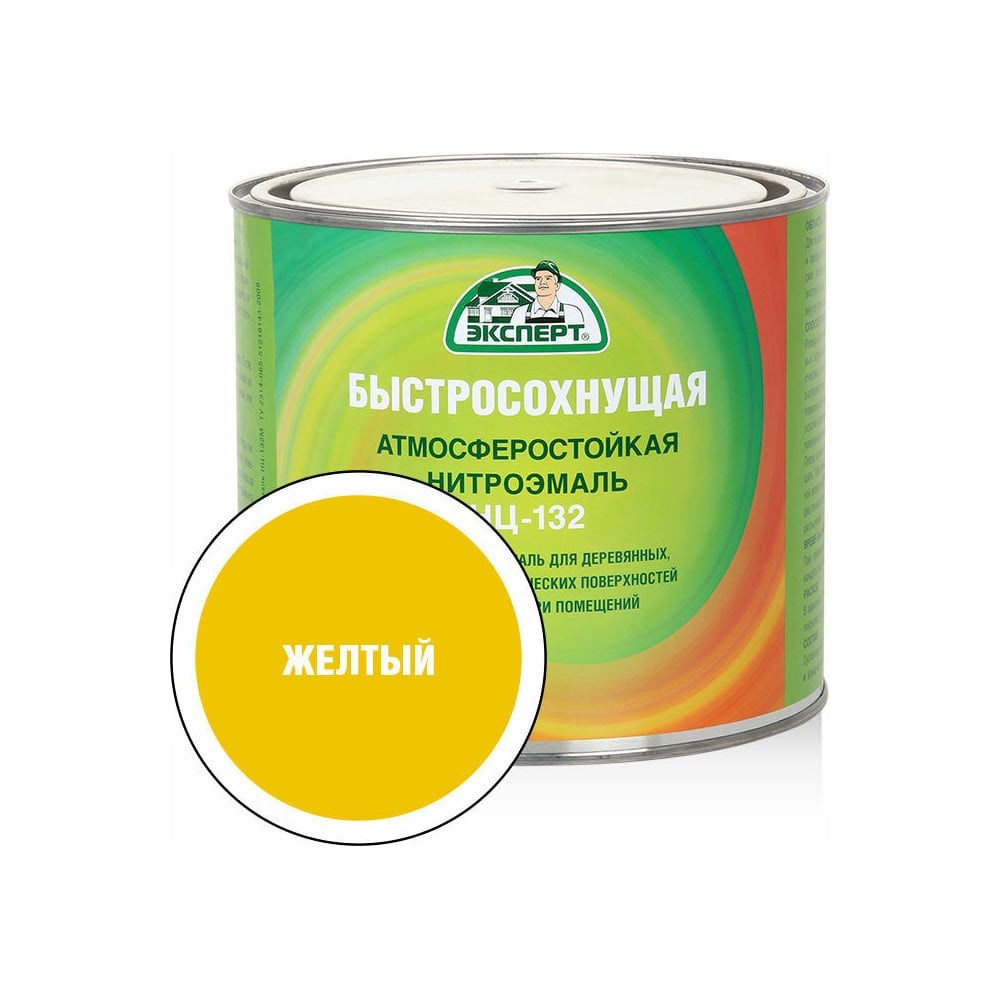 Эмаль Эксперт НЦ-132 (желтая; 1,7 кг) 22605 применяется для окрашивания деревянных, оштукатуренных и металлических поверхностей, изделий и оборудования снаружи и внутри помещений. Благодаря составу, продукт образует атмосферостойкое, глянцевое покрытие. При температуре воздуха от 18 до 22 градусов время высыхания каждого слоя 1 час.