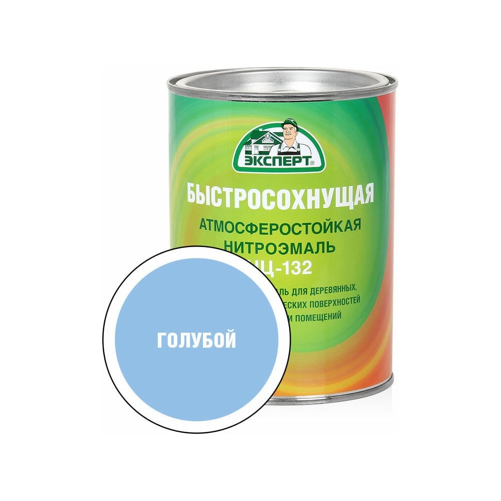 Эмаль Эксперт НЦ-132 (голубая; 0,7 кг) 28004 применяется для окрашивания деревянных, оштукатуренных и металлических поверхностей, изделий и оборудования снаружи и внутри помещений. Благодаря составу, продукт образует атмосферостойкое, глянцевое покрытие. При температуре воздуха от 18 до 22 градусов время высыхания каждого слоя 1 час.