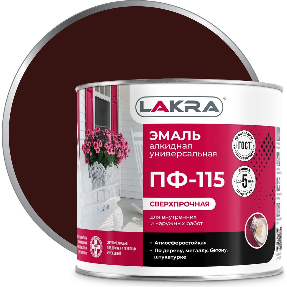 Эмаль Лакра ПФ-115 шоколадно-коричневая, 2 кг 90001010511 предназначена для осуществления отделочных работ и покраски изделий из дерева и металла. Отличается легким нанесением и высокой степенью укрывистости. Готовое покрытие характеризуется влагостойкостью и атмосферостойкостью.