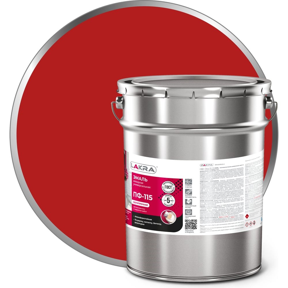 Эмаль Лакра ПФ-115 красная, 20 кг 90000698608 используется для окрашивания дверей, подоконников из дерева и изделий из металла. Подходит для покрытия поверхностей из бетона и цемента. Образует плотный защитный слой, устойчивый к влаге и неблагоприятным условиям окружающей среды.