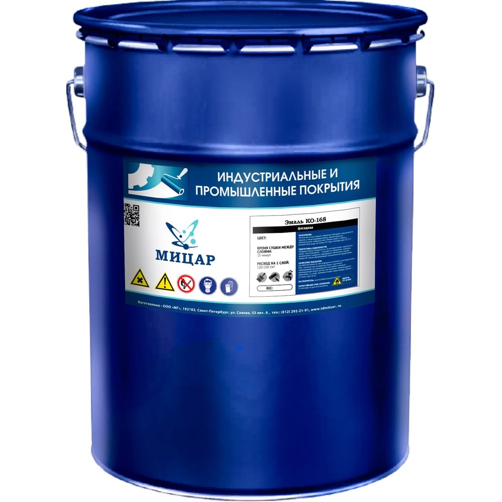 Фасадная эмаль Мицар КО-168 применяется для окрашивания фасадов зданий и загрунтованных поверхностей из металла. Используется при наружных работах.Образовывает однородную пленку. Данное покрытие обеспечивает защиту от воды в течение 24 часов при 20-22°С.