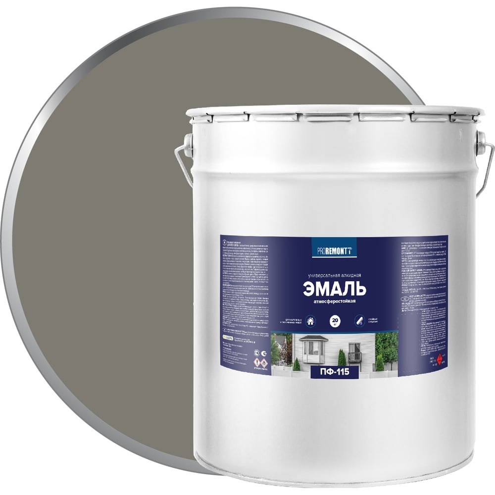 Эмаль PROREMONTT ПФ-115 серая, 20 кг Лк-00004475 предназначена для окрашивания поверхностей из дерева, бетона и металла. Подходит для отделочных работ в помещении. Легка в нанесении, отличается влагостойкостью, атмосферостойкостью и антикоррозийными свойствами.