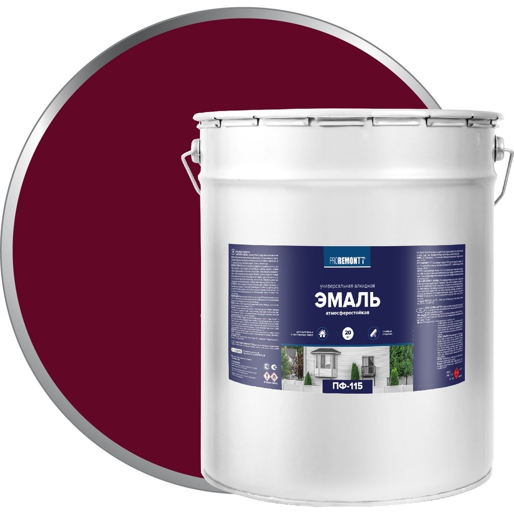 Эмаль PROREMONTT ПФ-115 винно-красная, RAL 3005, 20 кг Лк-00009814 предназначена для обработки поверхностей из металла, бетона и дерева. Применяется для декоративно-отделочных работ внутри и вне помещений. Эмаль легко наносится и обладает антикоррозийными свойствами. Состав образует ровное, устойчивое к износу и влиянию окружающей среды покрытие с глянцевой поверхностью.