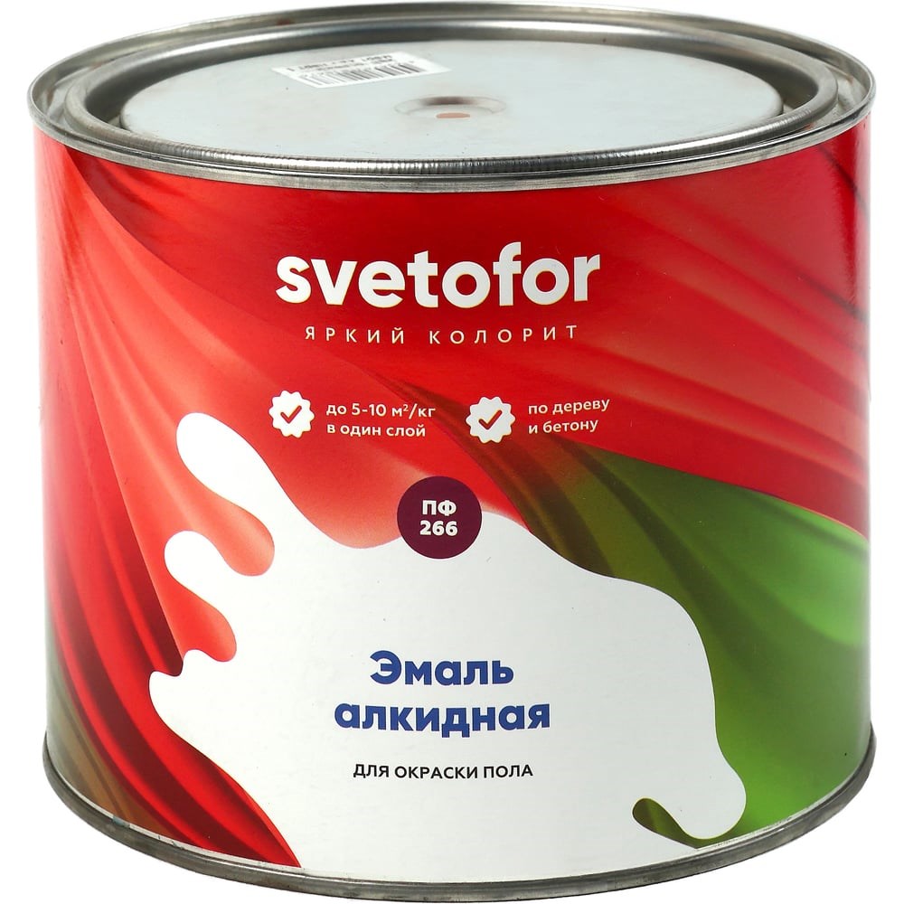 Эмаль Светофор ЛЮКС ПФ-266 ГОСТ красно-коричневая, 2 кг ТД000004574 - высококачественная эмаль для окраски напольных покрытий внутри помещений. Состав образует глянцевую поверхность устойчивую к воздействию влаги и истиранию. Подходит для всех типов жилых помещений. Продукт на основе алкидного лака высшего сорта используют для нанесения на предварительно окрашенные и неокрашенные поверхности. Универсальная эмаль обладает высокой адгезией к минеральным, деревянным и металлическим основаниям. Перед применением материал тщательно перемешать и наносить на сухую поверхность. Работу выполняют при температуре не ниже +5 градусов и относительной влажности воздуха не выше 80 %.