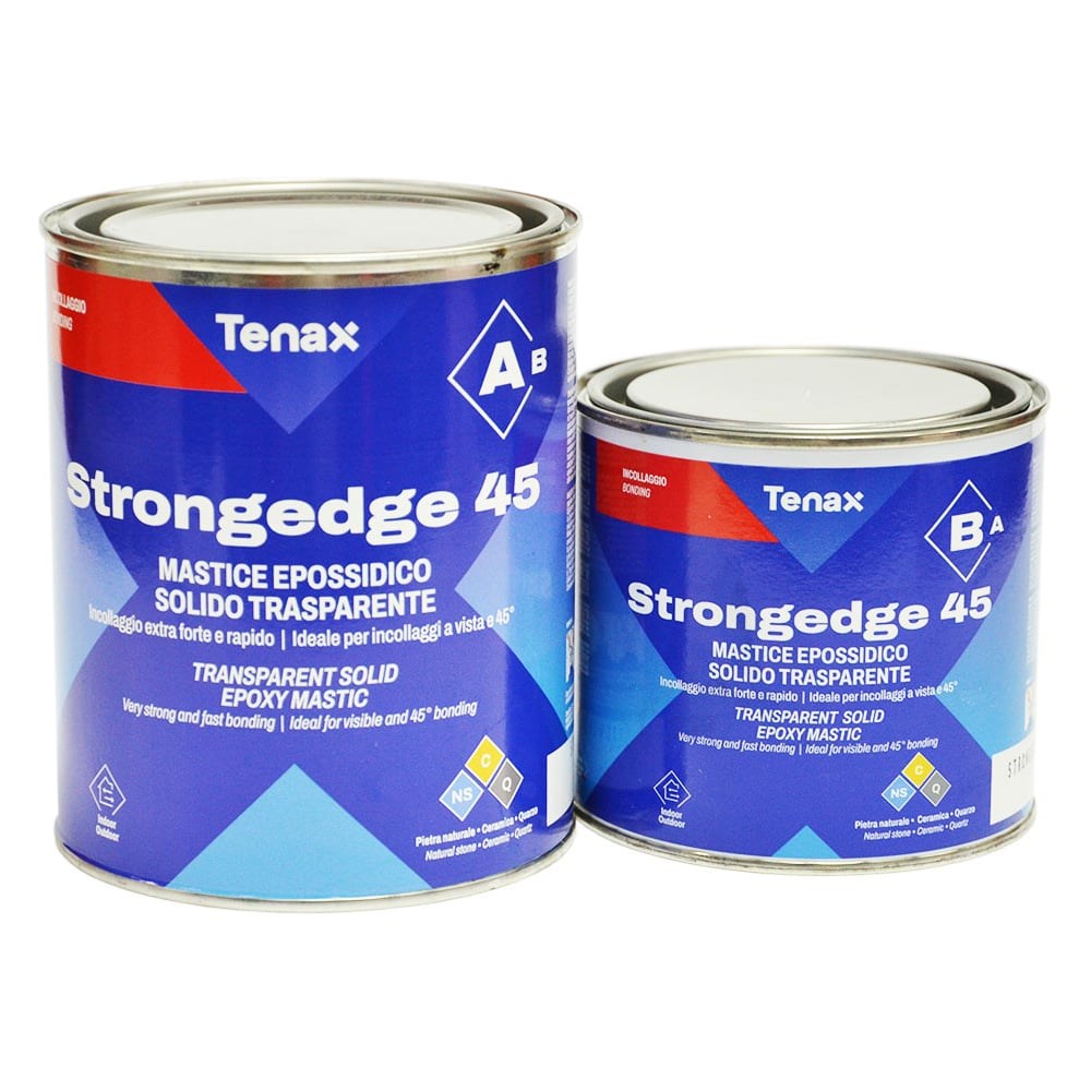 Эпоксидный клей Tenax Strong Edge 45 прозрачный/густой 1,0+0,5л 039210120 в тиксотропной мастике для склейки и усиления гранита, мрамора, кварцита, искусственного камня, керамики, и др. Способ применения: - Перед обработкой убедитесь, что материал чистый и сухой. - Возьмите необходимое количество по весу двух компонентов из банки А и банки B в соотношении 100 частей из банки А и 50 частей из банки B. - Во время смешивания используйте чистые инструменты. - Тщательно перемешайте и используйте полученную смесь. Не возвращайте неиспользованный клей обратно в банки. Используйте защитные перчатки и защитные очки во время работы. Закройте банки после использования.